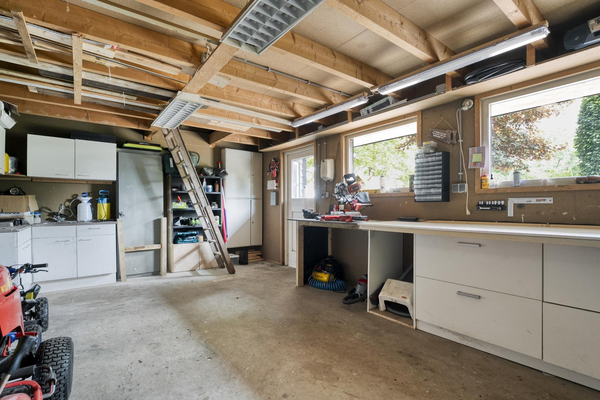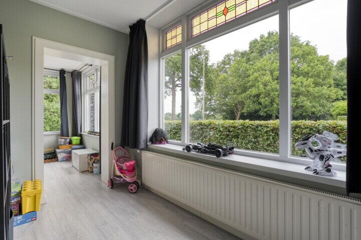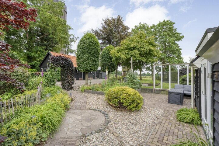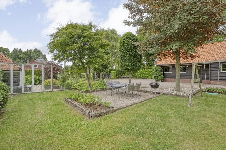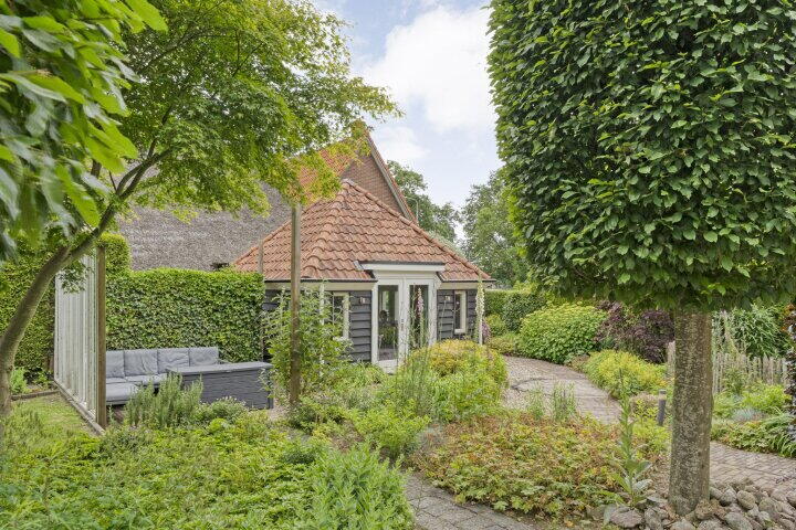 Deze speelse woning is uitstekend onderhouden en grotendeels voorzien van nieuwe dubbele beglazing. De woning wordt verwarmd met een Remeha cv ketel uit 2018 en de zitkamer is voorzien van vloerverwarming. Het houtwerk is in 2019 / 2020 geschilderd. Aan de westkant van de woning is een besloten tuin terwijl aan de oostkant de grote oprit met tuin en schuur is gesitueerd. De grote schuur en garage is van hout met een zadeldak gedekt met pannen. Het voorste deel kan worden gebruikt als garage of werkplaats, het middelste deel is een berging en het achterste deel kan worden gebruikt als stal voor kleinvee. De grote tuin bevindt zich naast de woning en schuur, achter de schuur is een klein weilandje.